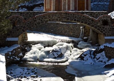 Mokra Gora je jedno od retkih sela koje u svom ataru ima četri crkve. To su crkva Vaznesenja Gospodnjeg, crkva Svetog Proroka Ilije,crkva Svetog Jovana Krstitelja i crkva Svetog Save. Jedna se nalazi u zaseoku Kršanje,druga u samom centru sela, trća se nalazi na lekovitom izvoru “ Bele vode”, dok se četvrta nalazi u Turističkom naselju “Mećavnik”.
