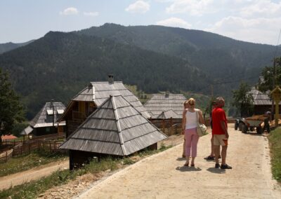 Mnoštvo je ovde takvih sadržaja. Objekti su, na primer, smešteni u idiličnom okruženju kamenitih padina, u živopisnim krajevima pored reke. Kuće su spolja obložene drvetom, njihova unutrašnjost primerena svakom zahtevu savremenog gosta, spolja tereni za sportove. Priroda okolo puna iznenađenja: neobičnih građevina, starih crkava, lekovitog bilja. Svi domaćini peku odličnu šljivovicu, domaćice umešno prave zimnicu i gostima nude da tegle ponesu kućama, neguje se domaća radinost, proizvodnja katrana i luča. Leti šetnje i kupanja u čistoj reci, zimi sankanje i skijanje. A u blizini sve drugo što treba: prodavnica, ambulanta, apoteka, suvenirnica, banka, pošta, kao da nije selo…